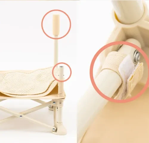 - Ghế làm từ chất liệu vải dù pha cotton mà không làm con nóng bí và dễ dàng vệ sinh sau khi bé sử dụng.