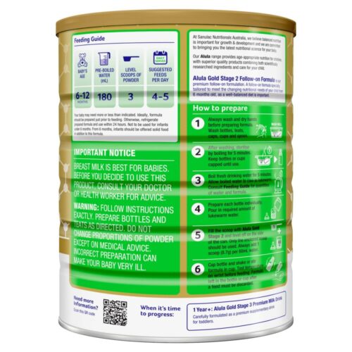 - Mô tả: Alula Gold Stage 2 là công thức cao cấp dành cho trẻ từ 6 đến 12 tháng tuổi với công thức đặc biệt để đáp ứng nhu cầu dinh dưỡng đang thay đổi của con bạn từ 6 tháng tuổi.