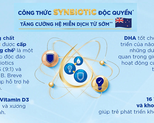 Trong đó Probiotic chính là những lợi khuẩn có trong hệ vinh sinh đường ruột. Prebiotic là các chất xơ hòa tan hay còn gọi là các oligosaccharide là thức ăn nuôi dưỡng các lợi khuẩn Probiotics để hỗ trợ cho hệ tiêu hoá. Sự kết hợp hoàn hảo giữa Probiotic và Prebiotics giúp cho hệ tiêu hóa khỏe mạnh. Khoa học cũng chứng minh 70% tế bào miễn dịch trú ngụ ở hệ tiêu hóa, nên khi hệ tiêu hóa khỏe mạnh thì hệ miễn dịch được tăng cường. Điều này cho thấy tầm quan trọng của SYNBIOTIC làm nền tảng để giúp trẻ phát triển khỏe mạnh từ những năm tháng đầu đời.