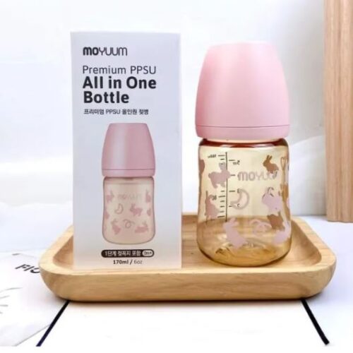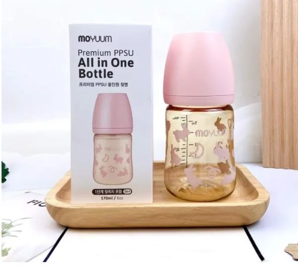 Bình sữa Moyuum hoạ tiết thỏ hồng 170ml
