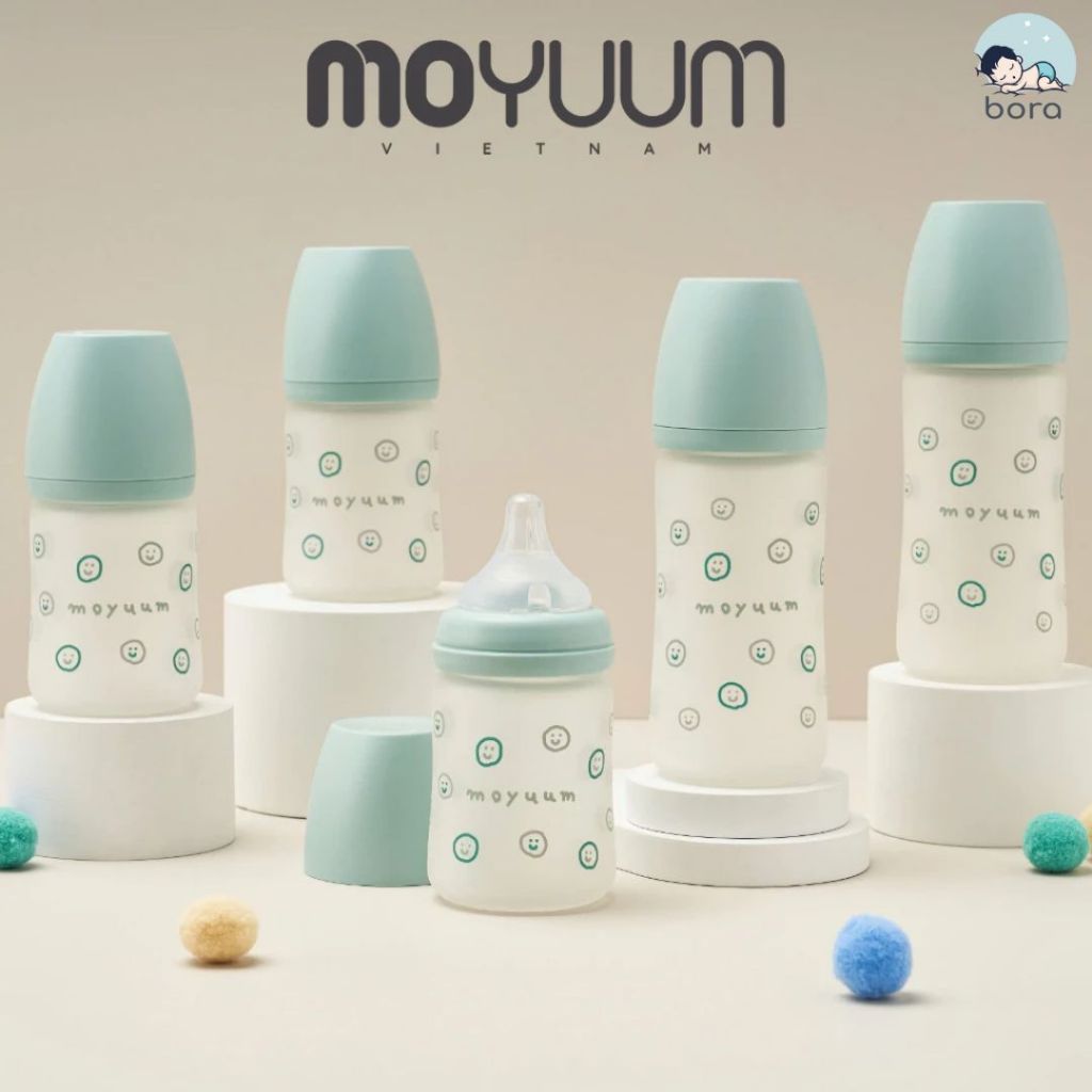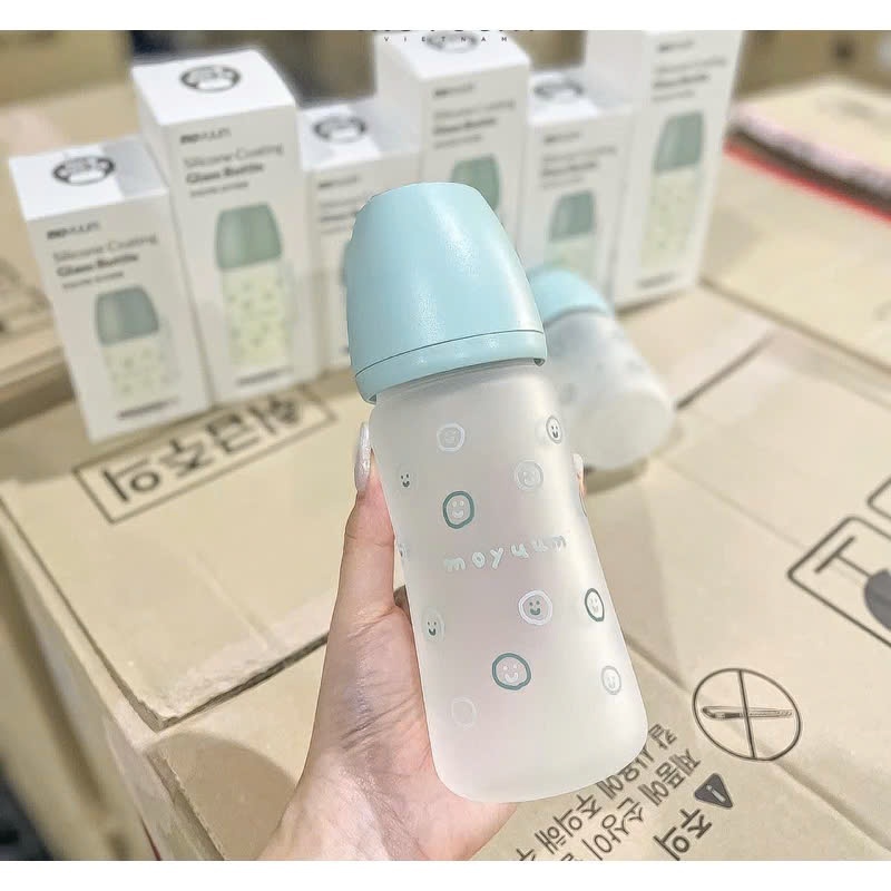 Bình Sữa Moyuum Thủy Tinh Tráng Silicon Họa Tiết Happy More 240m