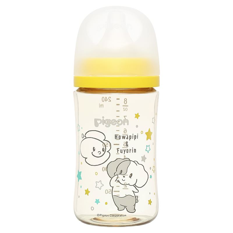 Bình sữa nhựa PPSU Pigeon Howapipi WN3 cổ rộng 240 ml màu vàng (từ 3 tháng)