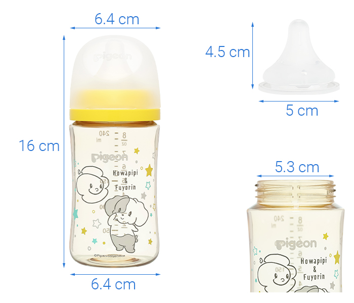 Bình sữa nhựa PPSU Pigeon Howapipi WN3 cổ rộng 240 ml màu vàng (từ 3 tháng)