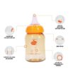 - Bình sữa có kiểu dáng cổ hẹp nhỏ gọn phù hợp với bé mới tập tự ôm bình.