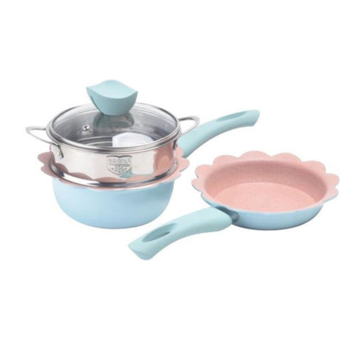 Bộ Nồi Chảo Đá Chống Dính Kèm Xửng Hấp(xanh)