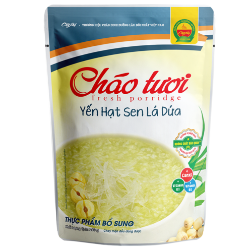 - Thành phần: Nước xương hầm, gạo tấm, tổ yến, hạt sen, lá dứa, …