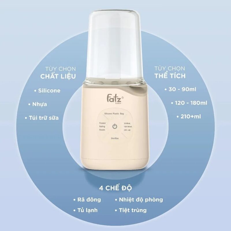 - 4 chức năng: Hâm sữa từ tủ lạnh/ Hâm sữa ở nhiệt độ phòng/ Hâm sữa từ tủ đông/ Tiệt trùng.