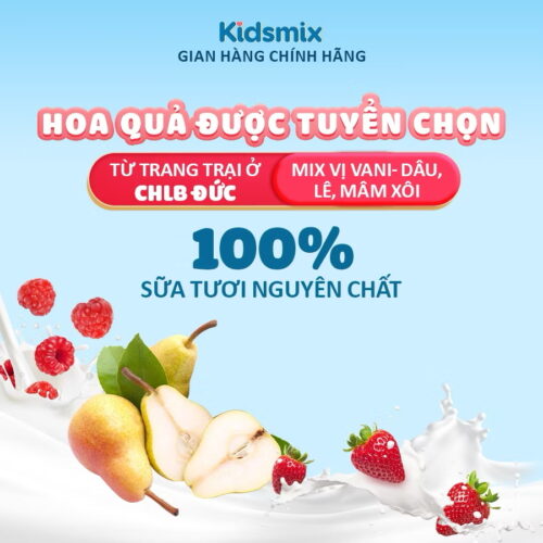 - Phô mai hoa quả Kids Mix bổ sung các lợi khuẩn và Vitamin cần thiết, giúp tăng cường sức khỏẻ cho hệ tiêu hóa, tăng sức đề kháng và giúp cho bữa ăn hàng ngày của trẻ ngon miệng hơn.