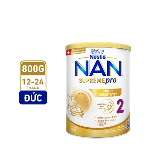 Sữa bột Nestlé NAN SUPREMEPRO 2 800g nhập khẩu Đức với đạm thủy phân 1 phần, 5HMO & lợi khuẩn