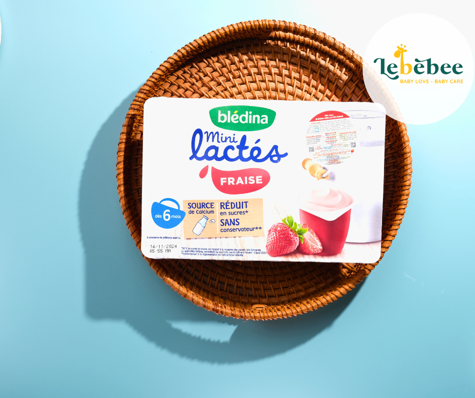 . Sữa chua Bledina Mini Lactes vị dâu là thực phẩm phù hợp với bé trên 6 tháng tuổi;