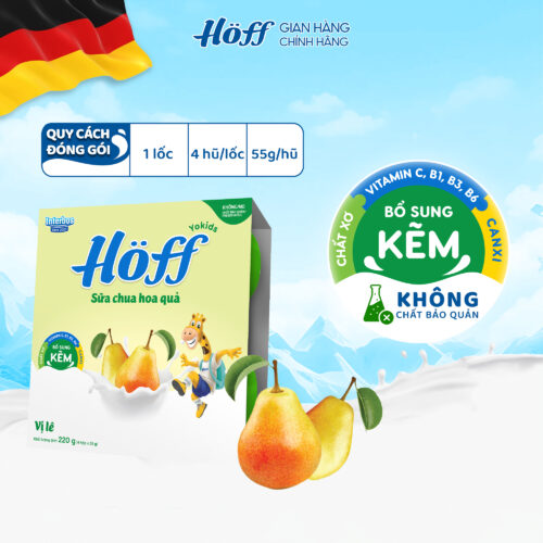 - Tăng cường miễn dịch: Bộ đôi Kẽm – Vitamin C có trong sữa chua trẻ em Hoff vị Lê lưới giúp tăng cường hệ miễn dịch, cải thiện hệ tiêu hóa, tăng cường hấp thu dưỡng chất và tác động đến sự tăng trưởng của cơ thể.