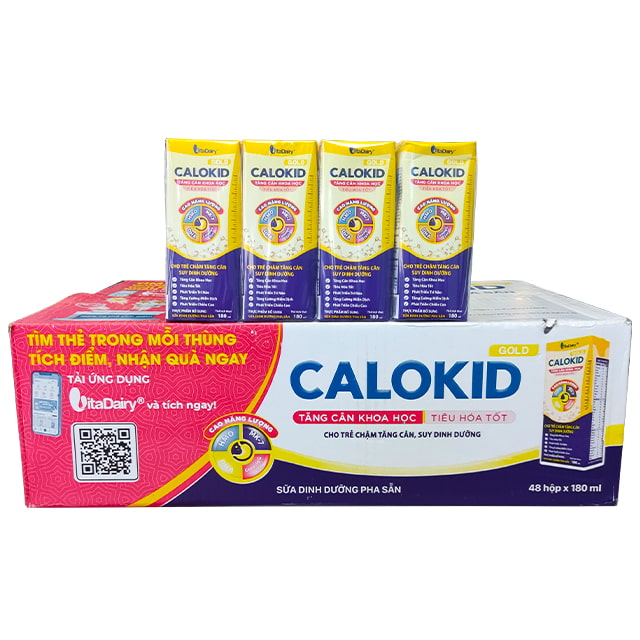 Hành trình tăng cân của bé đạt hiệu quả luôn bắt đầu từ nguồn dinh dưỡng quý giá mẹ chọn. Chính vì thế, để trang bị “vũ khí” cho bé tăng cân đúng từng giai đoạn phát triển, mẹ thông thái phải sáng suốt lựa chọn sữa chuẩn khoa học đáp ứng nhu cầu thể trạng bé chậm cân và suy dinh dưỡng. Sữa Calokid Gold pha sẵn hộp 180ml với nguồn nguyên liệu nhập khẩu Mỹ cùng công thức giàu đạm chất lượng cao kết hợp cùng sữa non giúp trẻ tăng cân khoa cân học, phát triển hệ miễn dịch, chiều cao vượt trội.