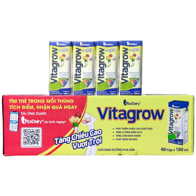 Đồng hành cùng con yêu trên hành trình phát triển toàn diện, Vitadairy đã nghiên cứu và cho ra mắt sản phẩm sữa pha sẵn Vitagrow hộp 180ml tiện lợi dành cho trẻ trên 1 tuổi. Với công thức cải tiến khoa học, Vitagrow không chỉ đáp ứng mong muốn phát triển chiều cao vượt trội của bé, sản phẩm còn tiếp thêm đầy đủ dinh dưỡng chất lượng giúp bé thông minh hơn, khỏe mạnh hơn, tự tin hơn.