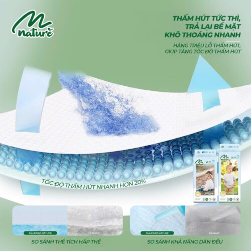 Với khả năng co giãn tốt hơn, mềm hơn đai chun của tã bỉm Momo Nature 2025 giúp bé cảm thấy thoải mái và linh hoạt hơn trong mọi hoạt động.